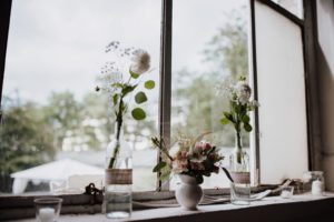 Sonnenlicht fällt auf bunte Blumenvasen am Fenster – detailverliebte Hochzeitsreportage NRW. Sonnenlicht fällt auf bunte Blumenvasen am Fenster – detailverliebte Hochzeitsreportage NRW.
