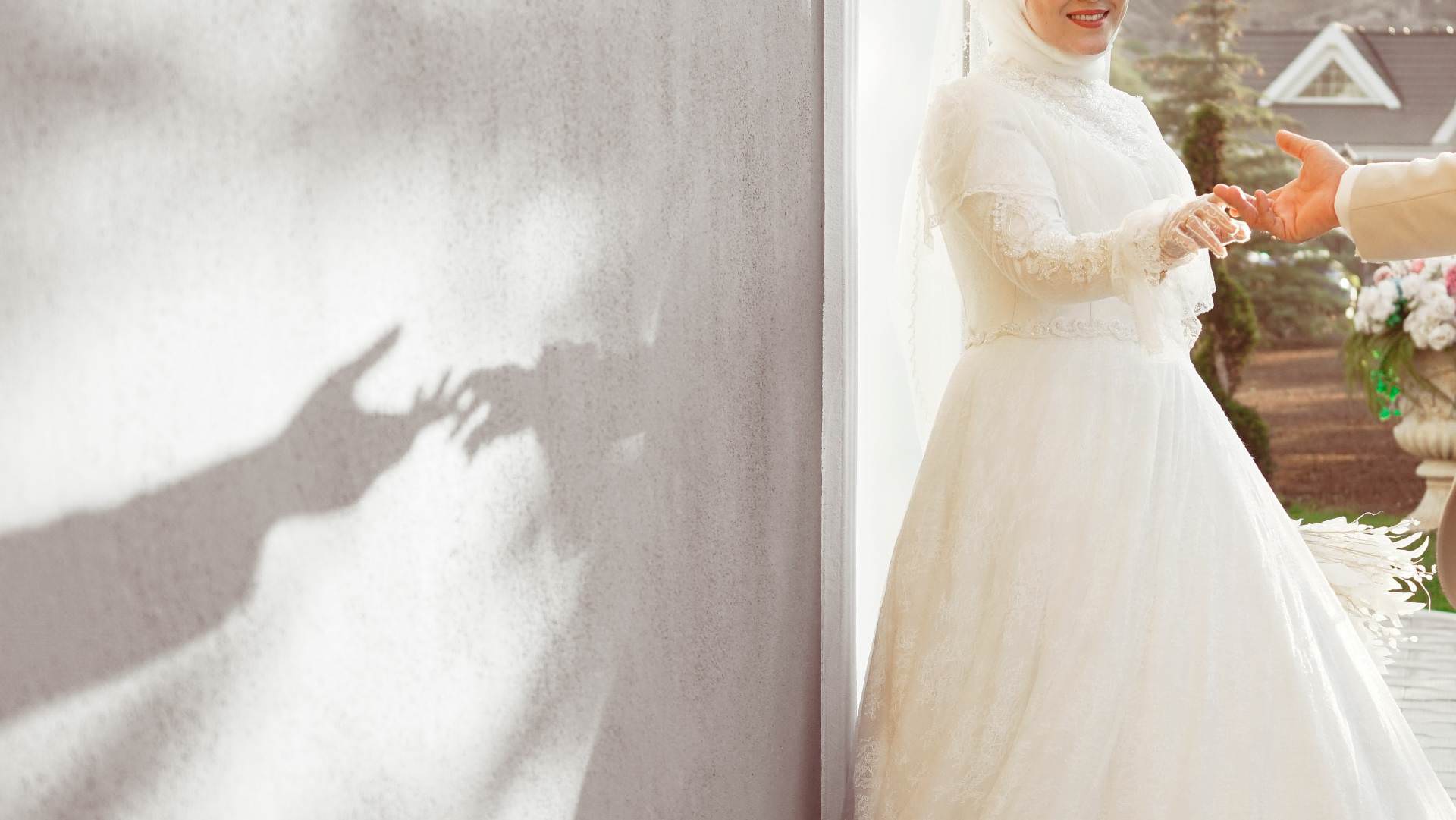 Sanft hält die Braut die Hand ihres Partners, sanfte Schatten tanzen über die Wand. Hochzeitsfotografin Köln. Sanft hält die Braut die Hand ihres Partners, sanfte Schatten tanzen über die Wand. Hochzeitsfotografin Köln.